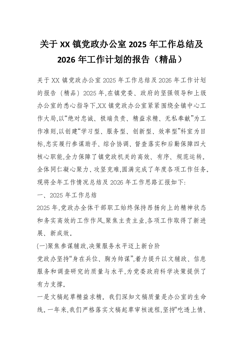 关于XX镇党政办公室2025年工作总结及2026年工作计划的报告(精品)