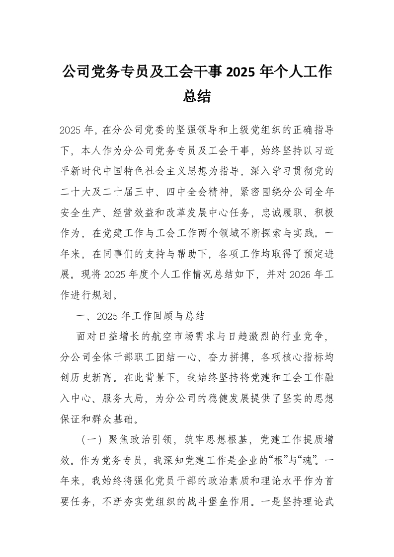 首页学习提升公司党务专员及工会干事2025年个人工作总结