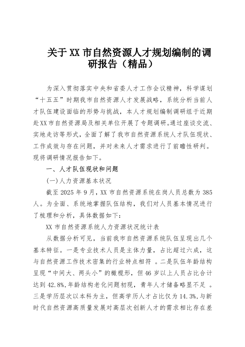 关于XX市自然资源人才规划编制的调研报告(精品)