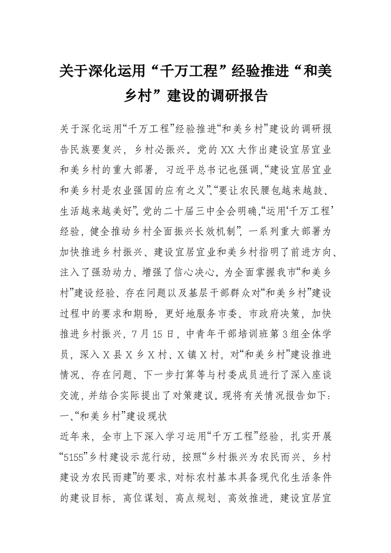 关于深化运用“千万工程”经验推进“和美乡村”建设的调研报告