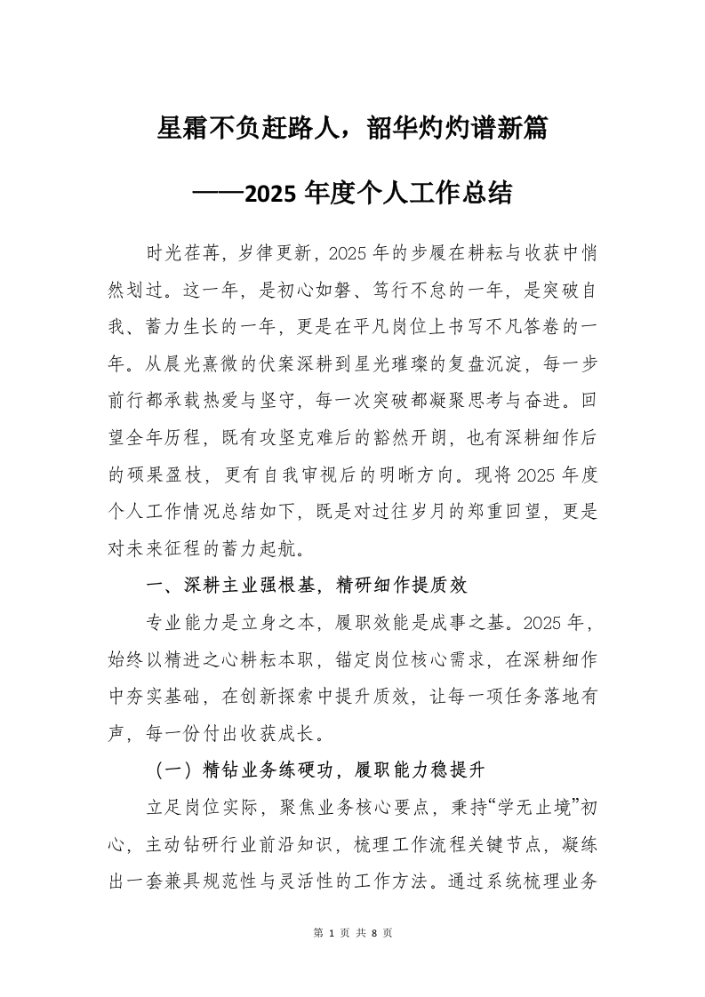 首页精选范文2025年度个人工作总结:星霜不负赶路人,韶华灼灼谱新篇