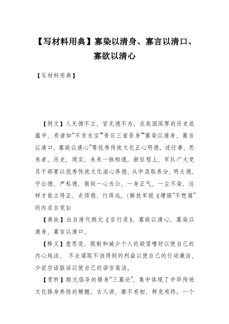 【写材料用典】寡染以清身、寡言以清口、寡欲以清心
