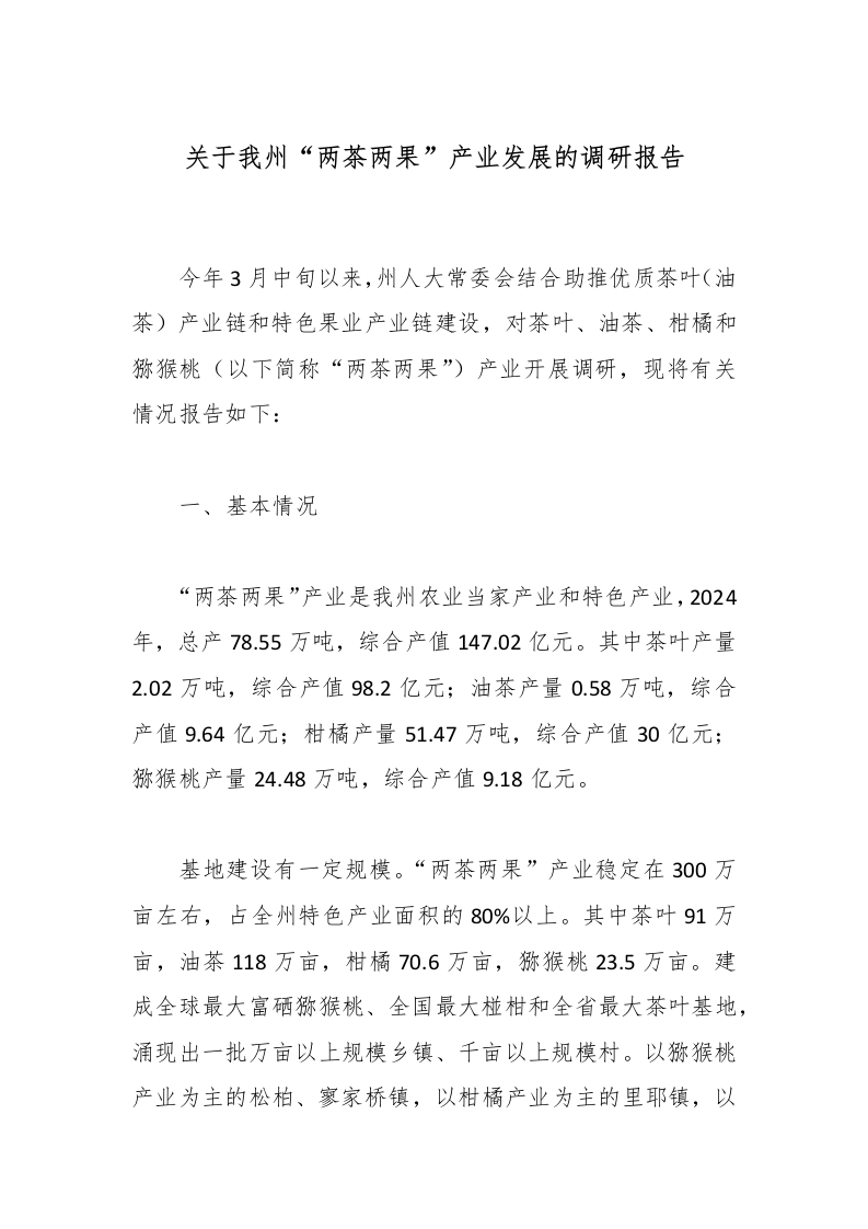 首页精选范文关于我州“两茶两果”产业发展的调研报告_副本