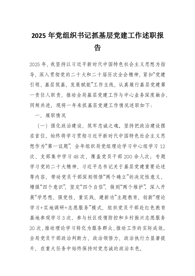2025年党组织书记抓基层党建工作述职报告