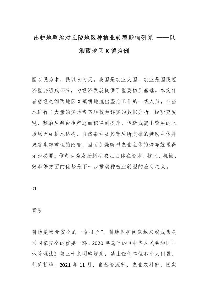 出耕地整治对丘陵地区种植业转型影响研究 ——以湘西地区X镇为例_副本