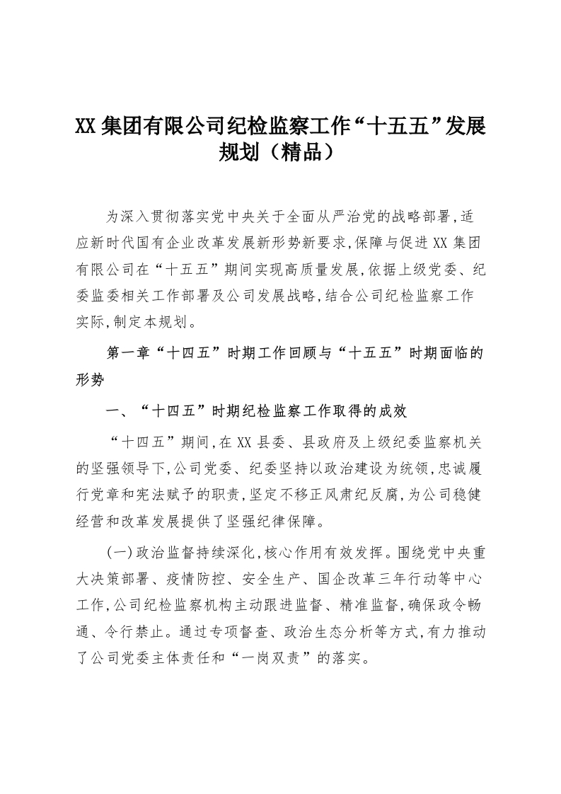 XX集团有限公司纪检监察工作“十五五”发展规划(精品)
