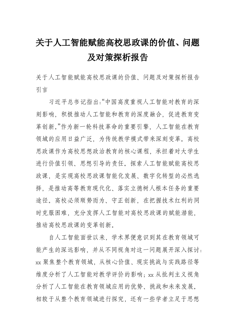 关于人工智能赋能高校思政课的价值、问题及对策探析报告