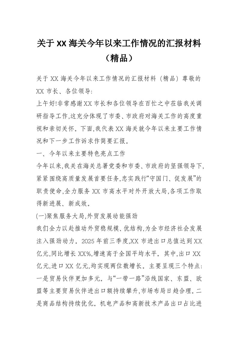 关于XX海关今年以来工作情况的汇报材料(精品)