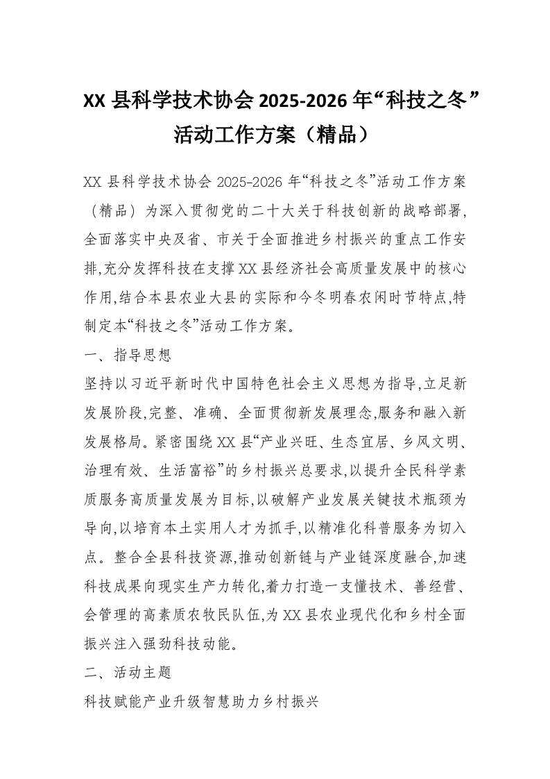 XX县科学技术协会2025-2026年“科技之冬”活动工作方案(精品)