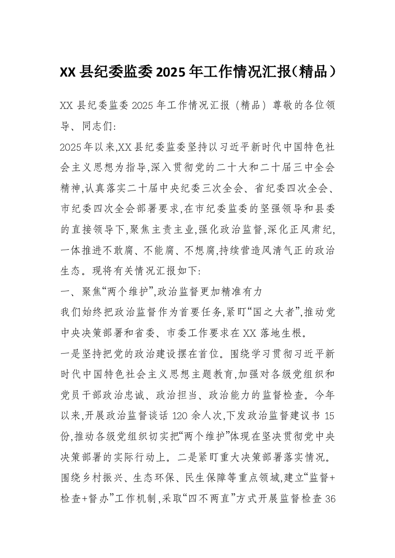 XX县纪委监委2025年工作情况汇报(精品)