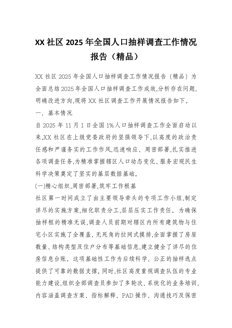 XX社区2025年全国人口抽样调查工作情况报告(精品)