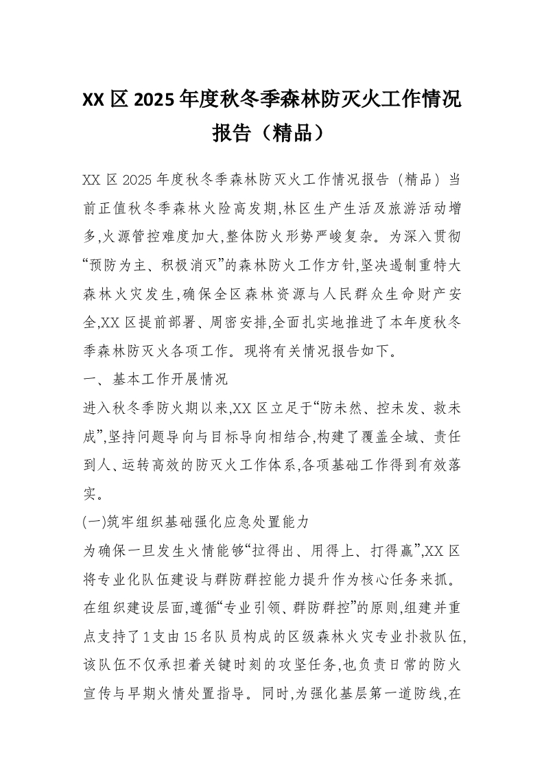 XX区2025年度秋冬季森林防灭火工作情况报告(精品)