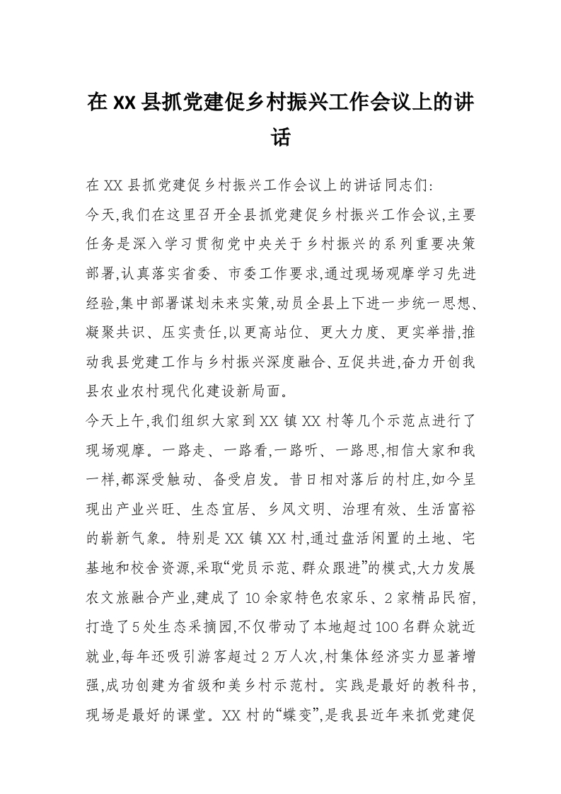 在XX县抓党建促乡村振兴工作会议上的讲话
