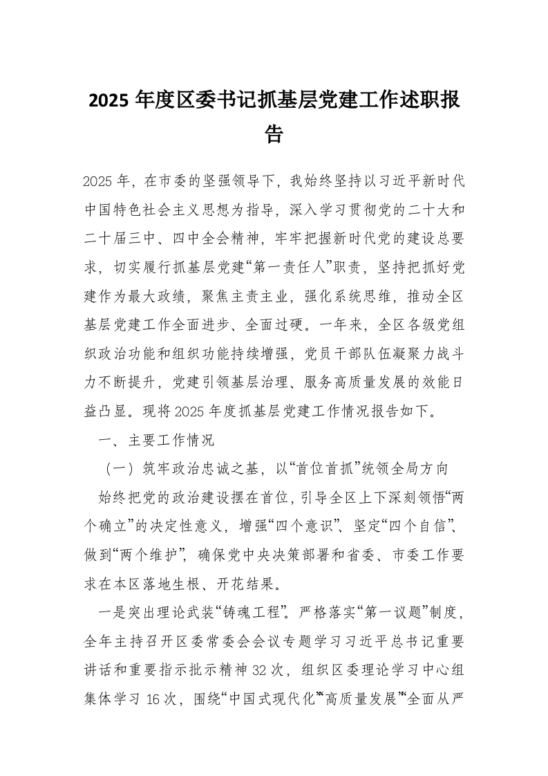 首页工作文档2025年度区委书记抓基层党建工作述职报告