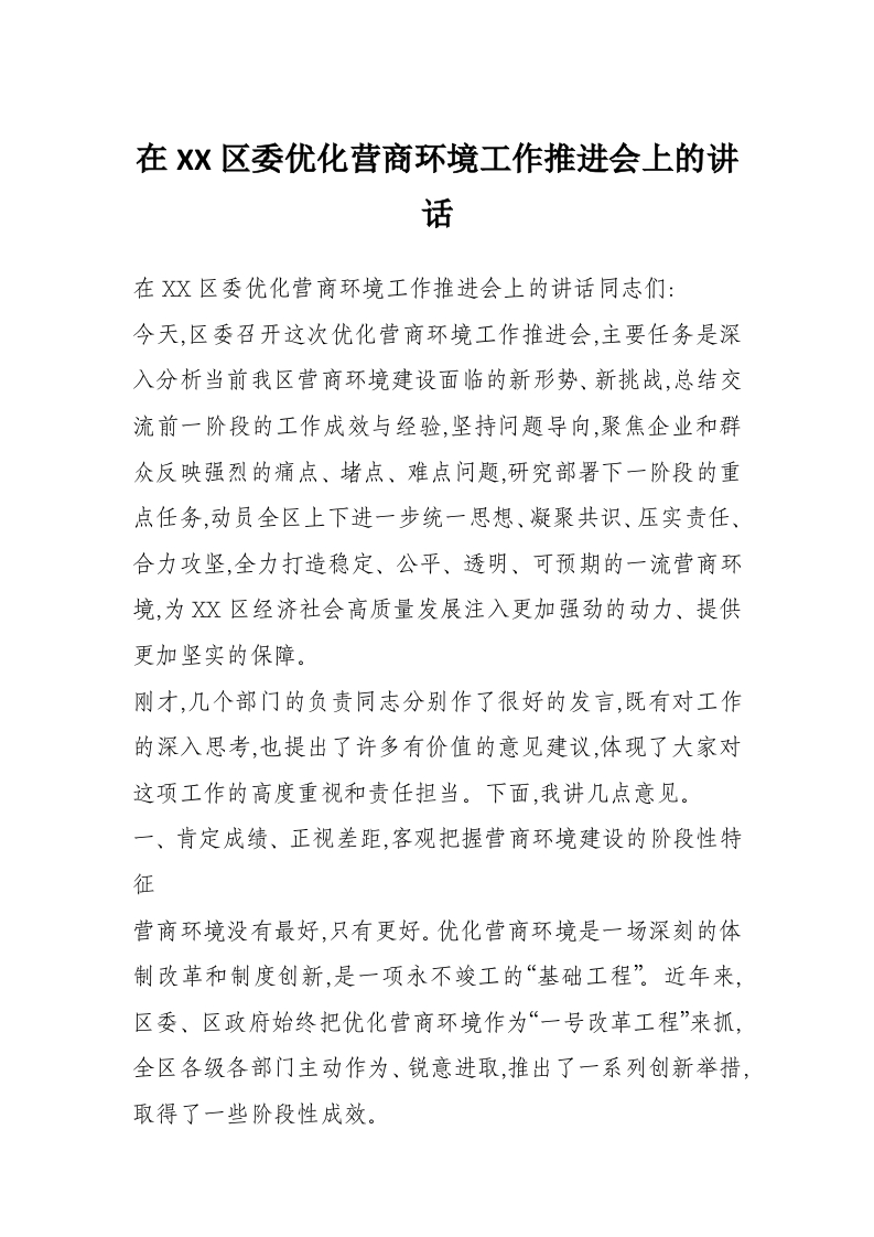 首页学习提升在XX区委优化营商环境工作推进会上的讲话