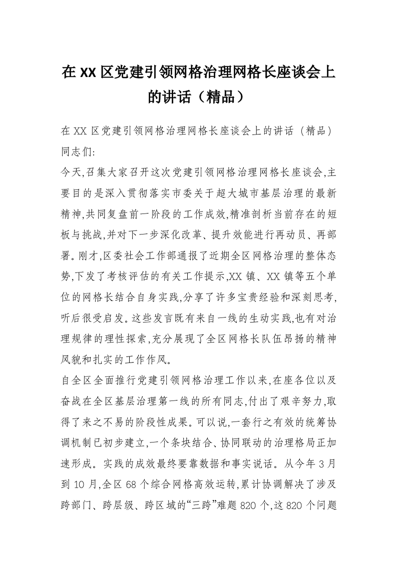 在XX区党建引领网格治理网格长座谈会上的讲话(精品)