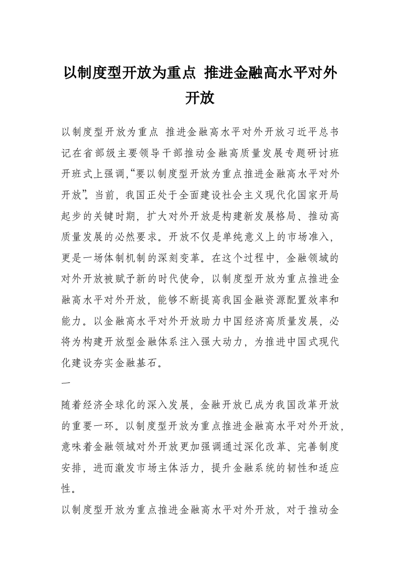 首页学习提升以制度型开放为重点 推进金融高水平对外开放