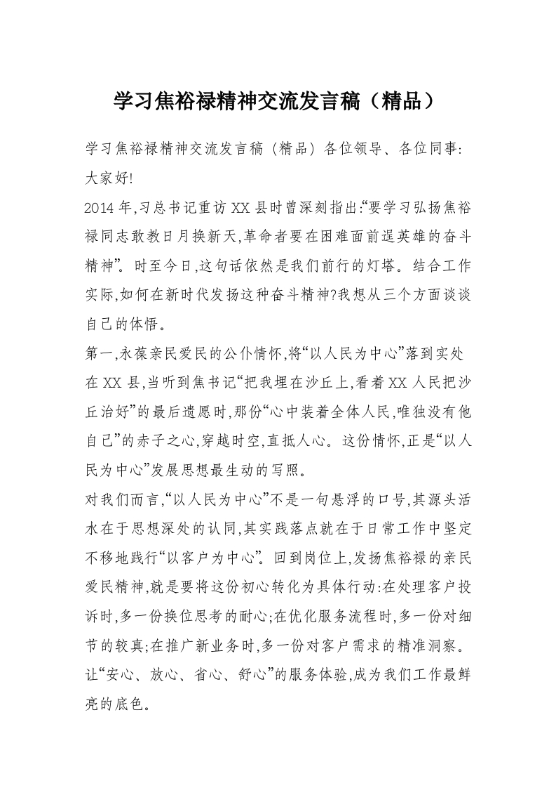 学习焦裕禄精神交流发言稿(精品)