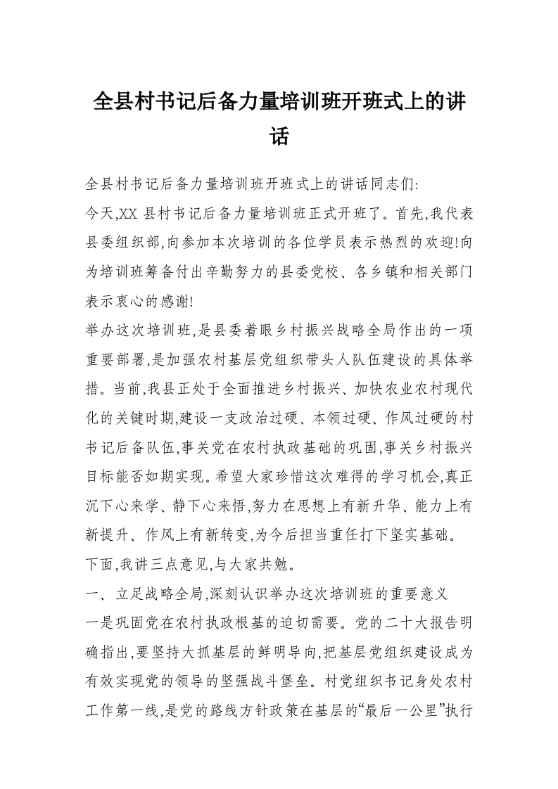 首页学习提升全县村书记后备力量培训班开班式上的讲话