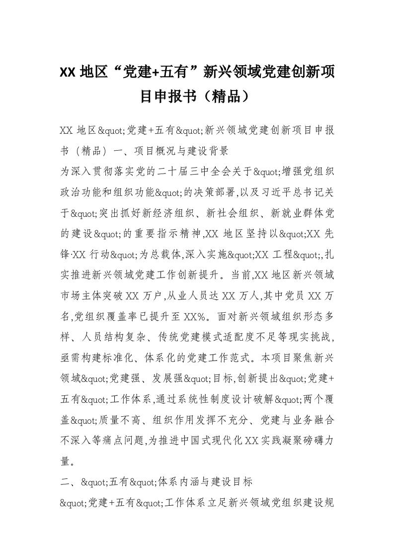XX地区“党建+五有”新兴领域党建创新项目申报书(精品)