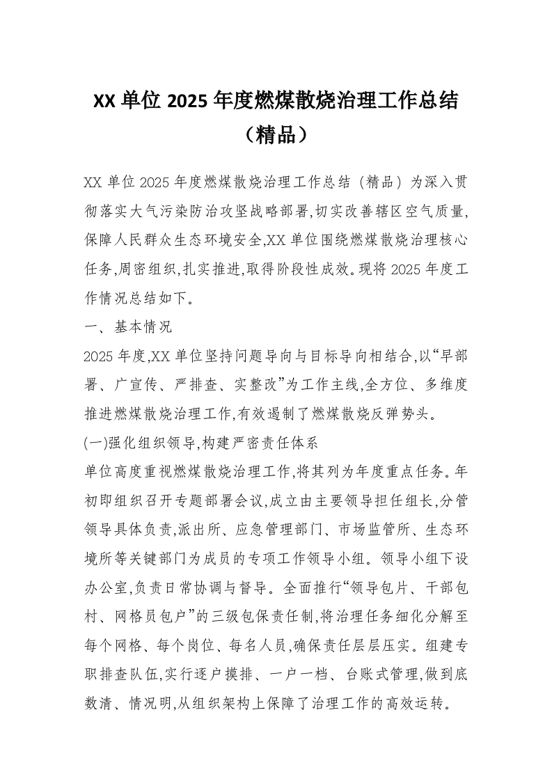首页写作素材XX单位2025年度燃煤散烧治理工作总结(精品)
