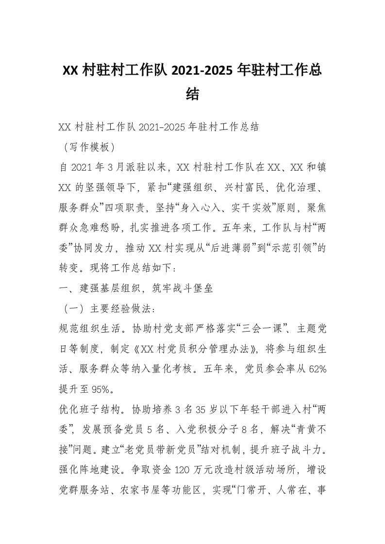 XX村驻村工作队2021-2025年驻村工作总结