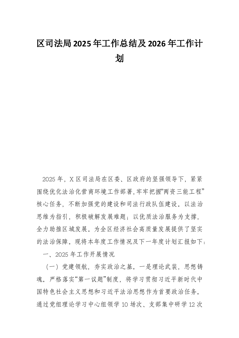 首页材料汇编区司法局2025年工作总结及2026年工作计划