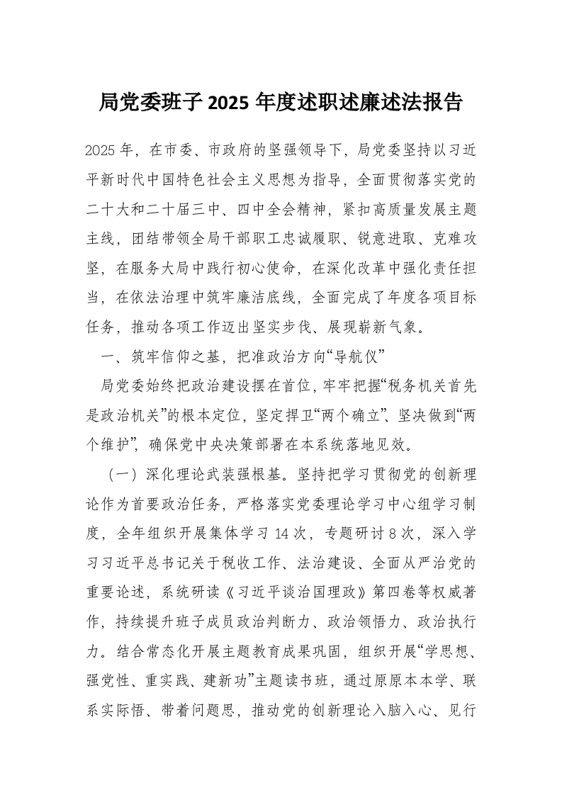 首页材料汇编局党委班子2025年度述职述廉述法报告