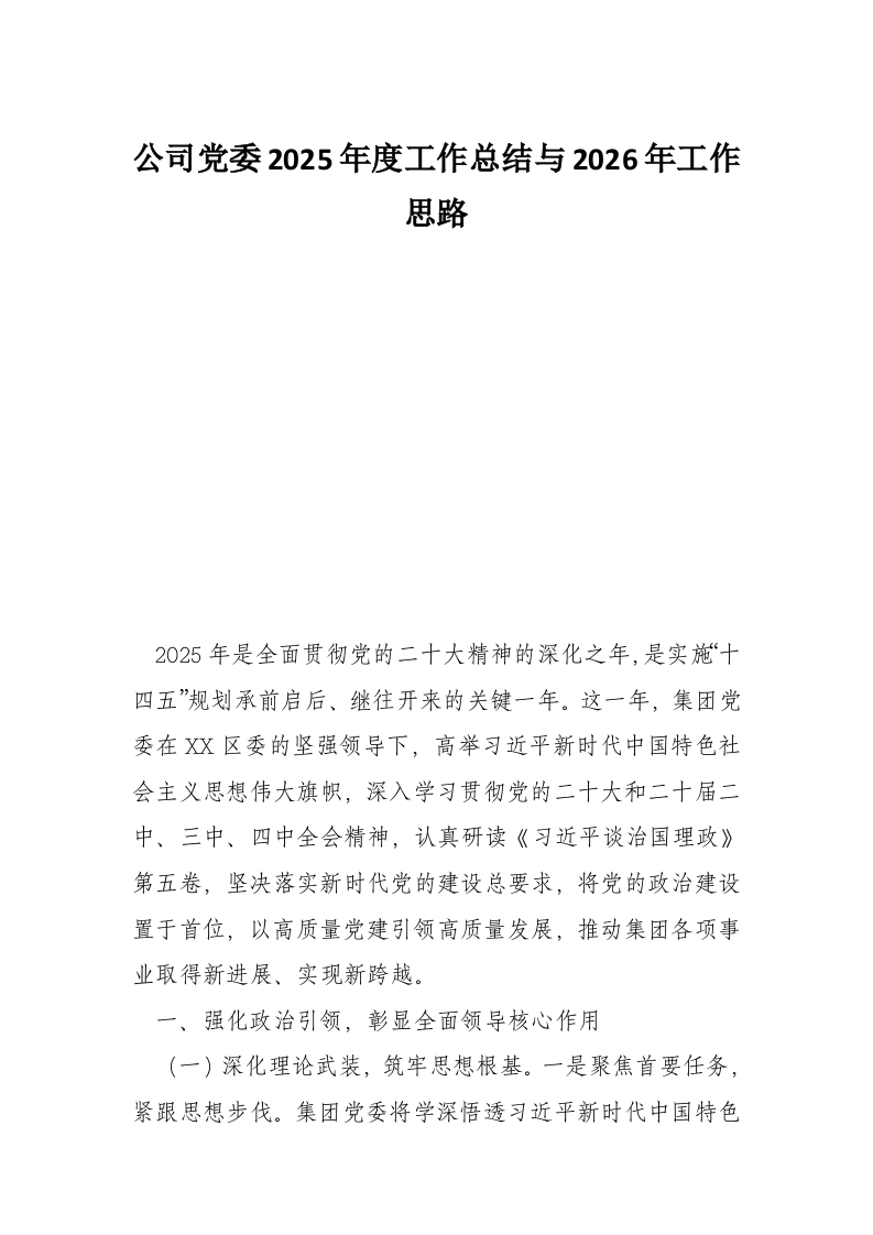 首页材料汇编公司党委2025年度工作总结与2026年工作思路