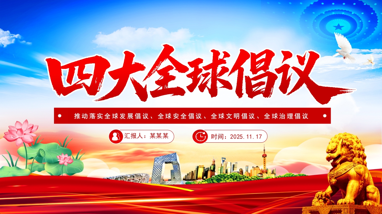 首页PPT模板四大全球倡议要点内容解读PPT课件下载