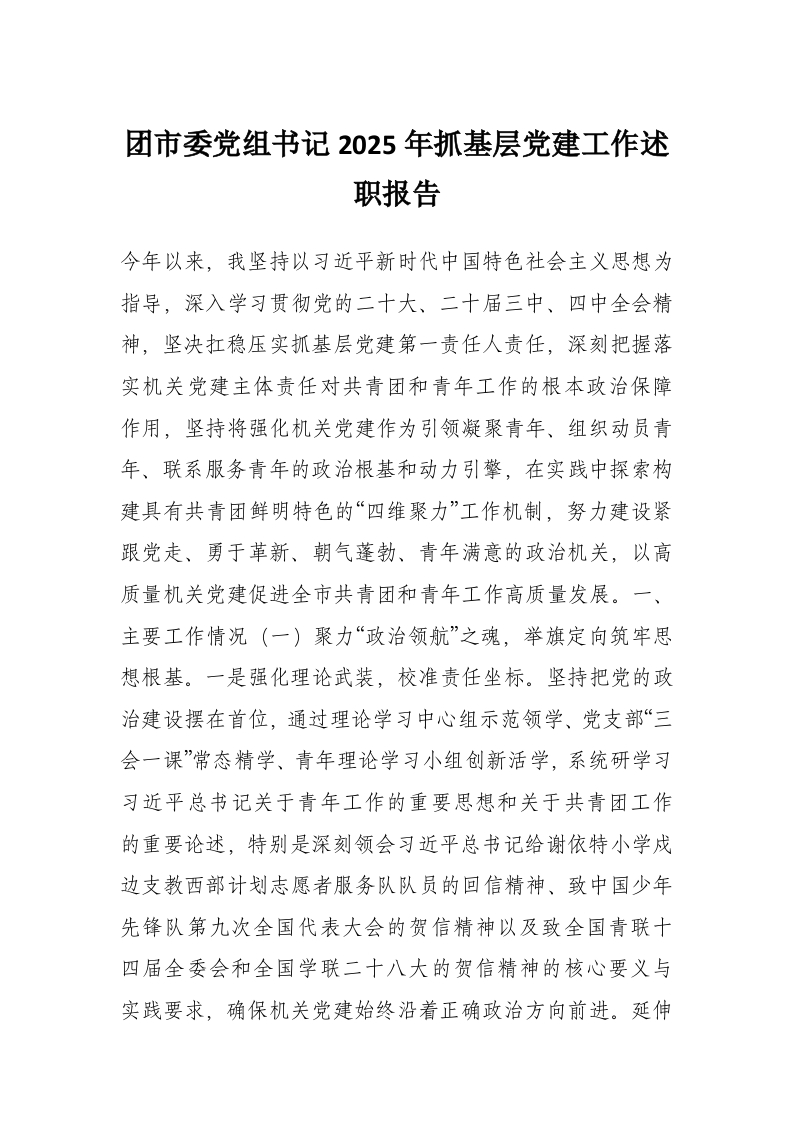 首页材料汇编团市委党组书记2025年抓基层党建工作述职报告