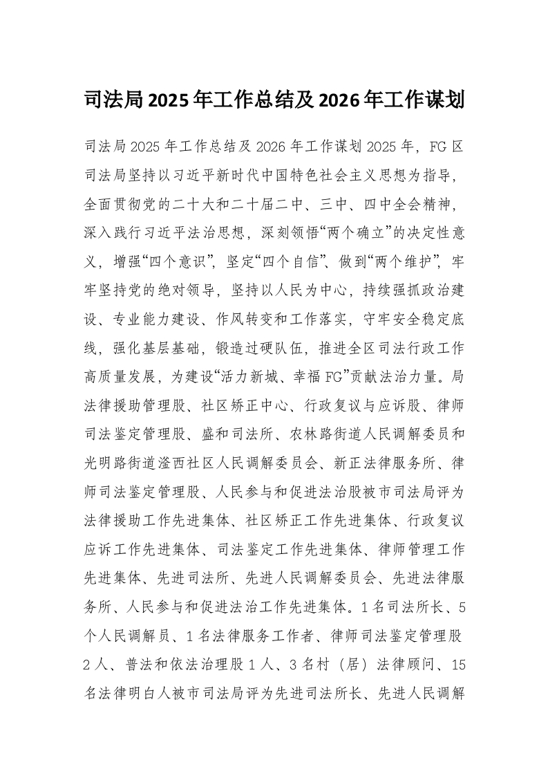 首页材料汇编司法局2025年工作总结及2026年工作谋划