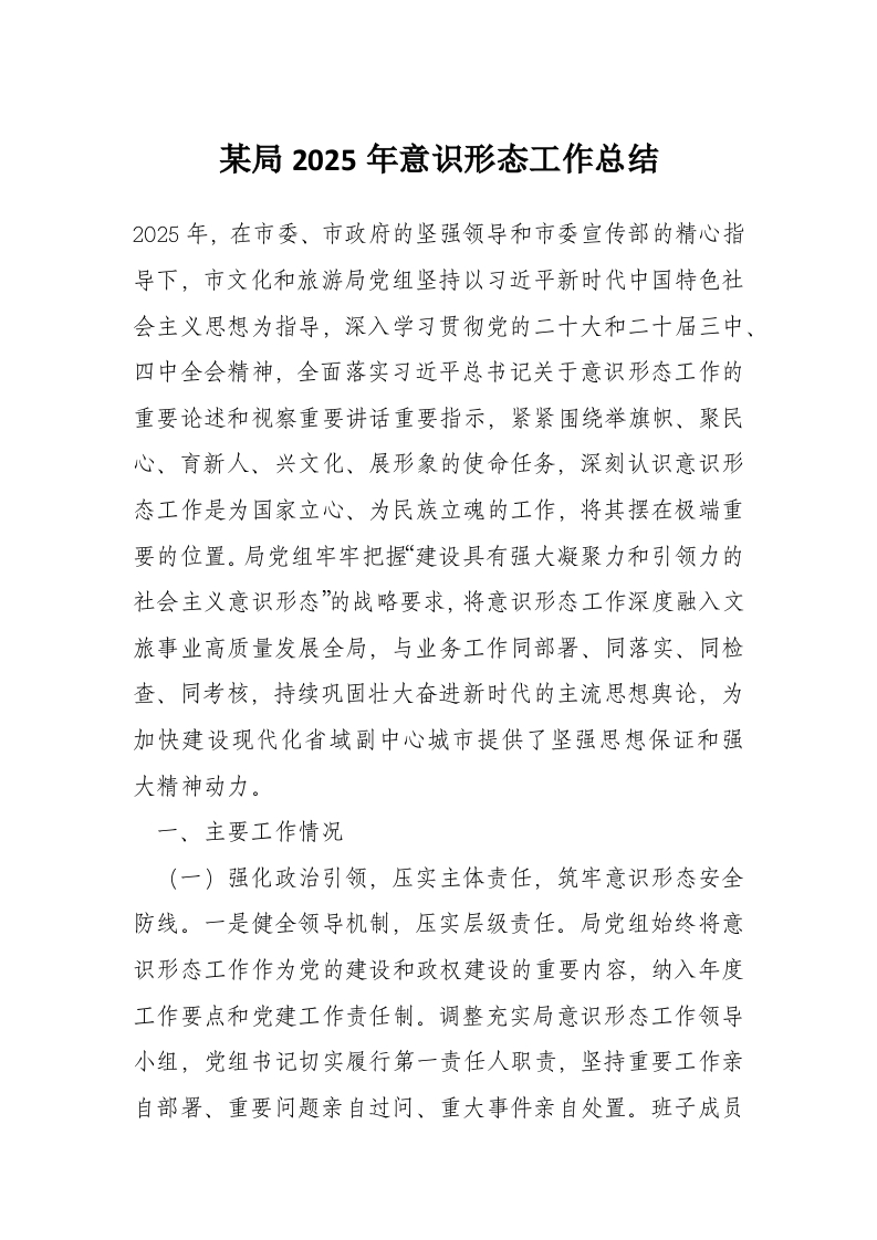 首页材料汇编某局2025年意识形态工作总结