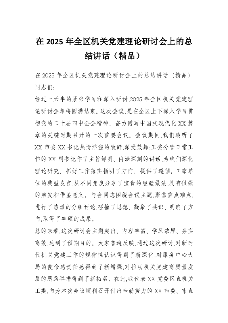 首页材料汇编在2025年全区机关党建理论研讨会上的总结讲话(精品)