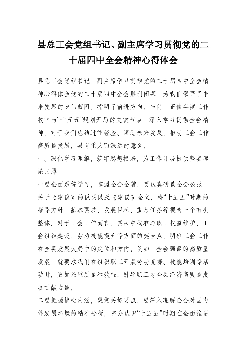 县总工会党组书记、副主席学习贯彻党的二十届四中***精神心得体会