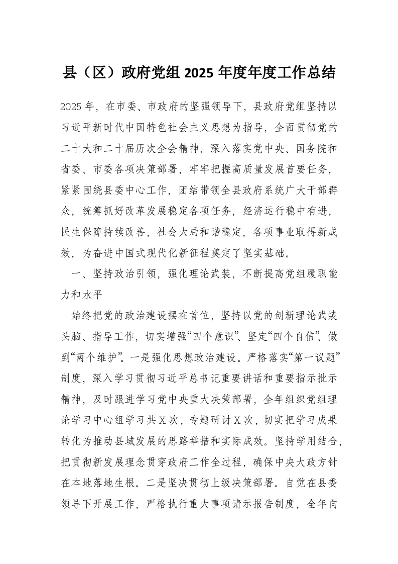 首页材料汇编县(区)***党组2025年度年度工作总结