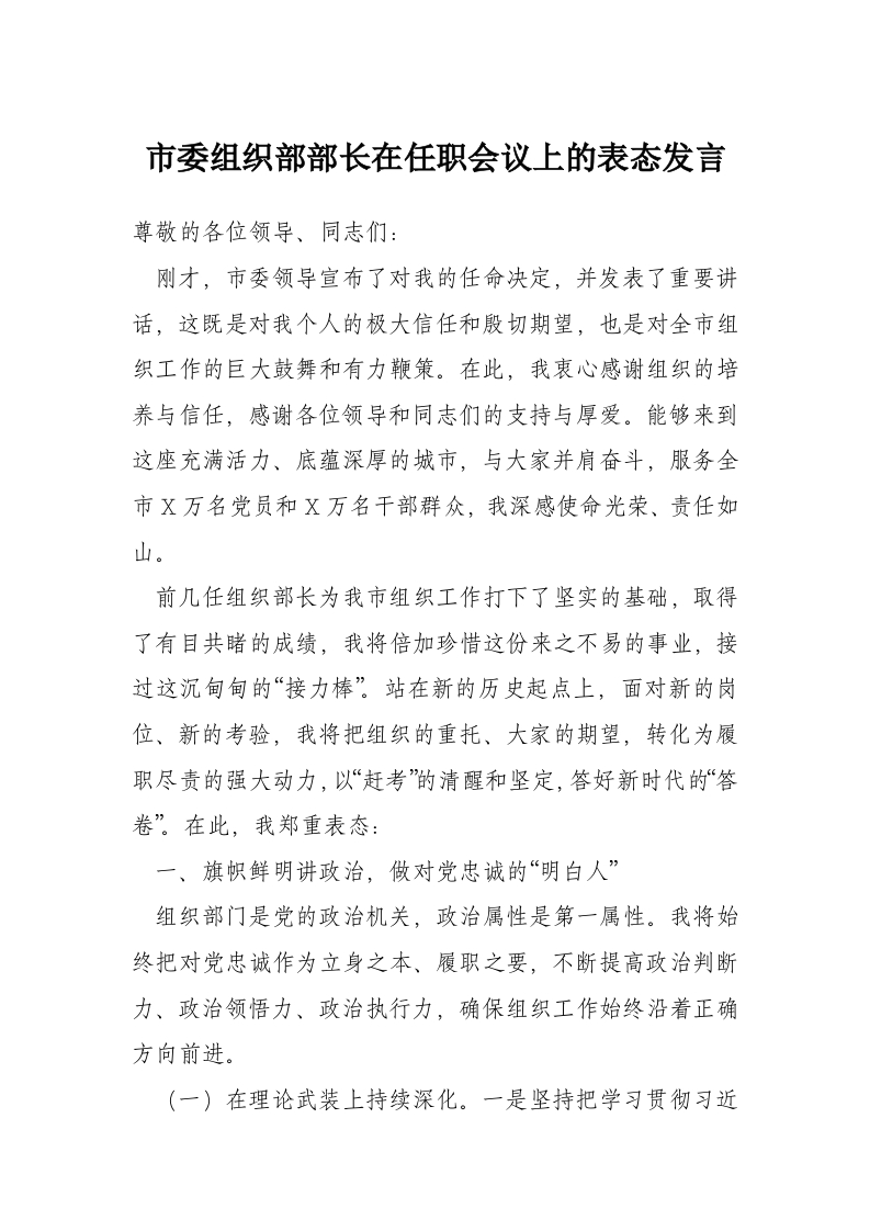 首页材料汇编市委组织部部长在任职会议上的表态发言