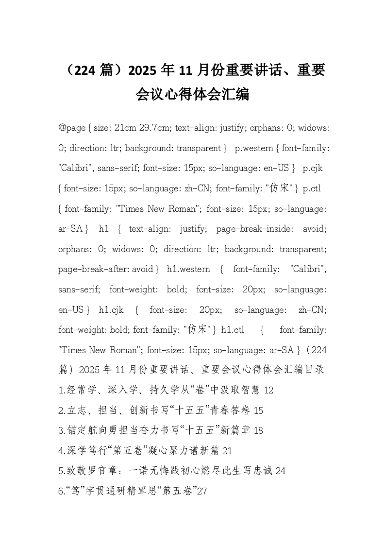 (224篇)2025年11月份重要讲话、重要会议心得体会汇编