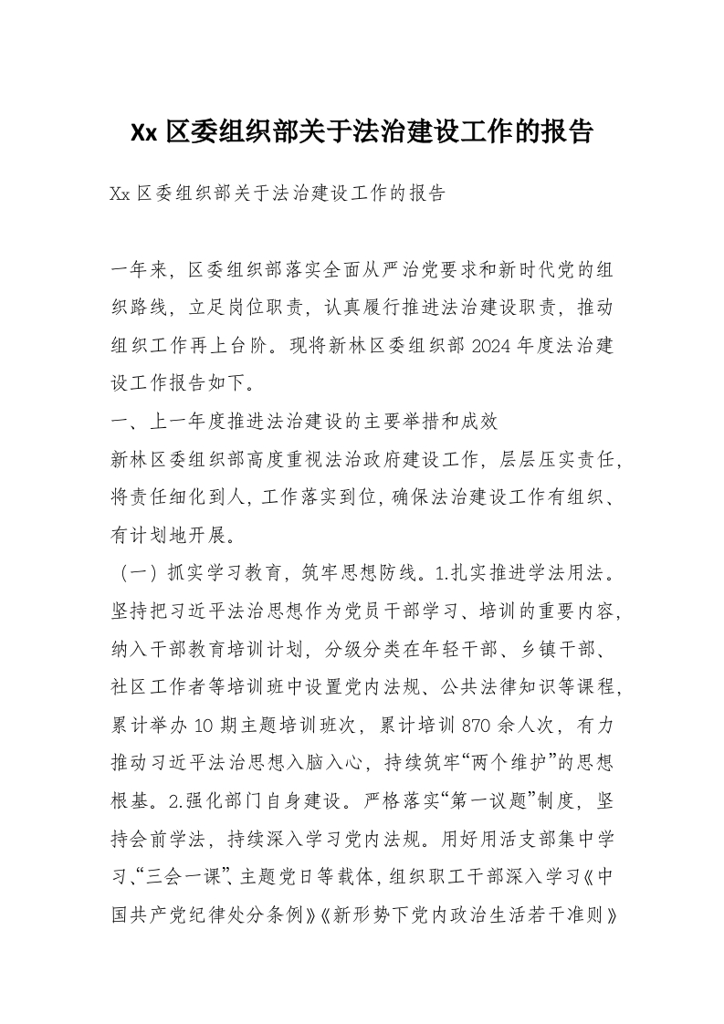 首页写作素材Xx区委组织部关于法治建设工作的报告