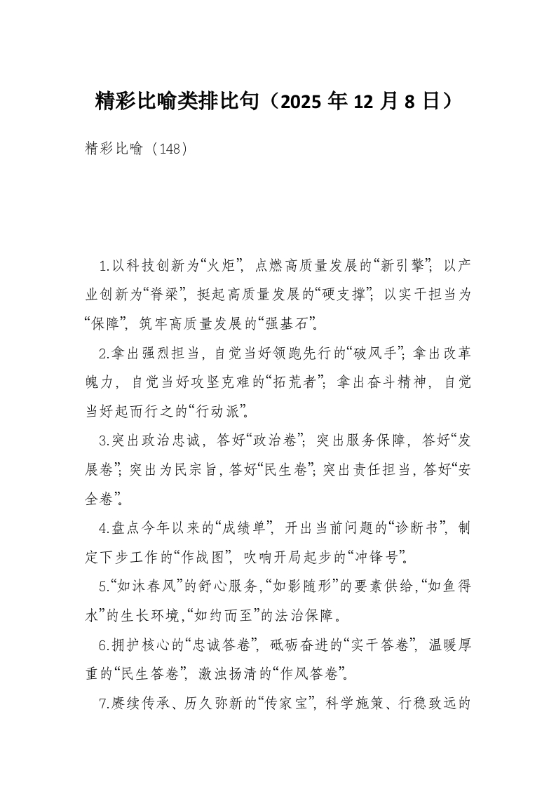 首页每日金句精彩比喻类排比句(2025年12月8日)