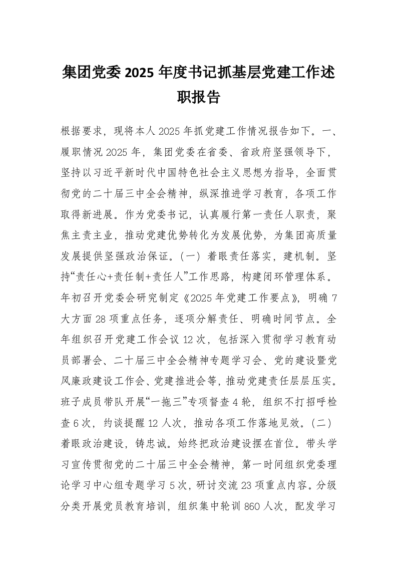 首页讲课讲稿集团党委2025年度书记抓基层党建工作述职报告