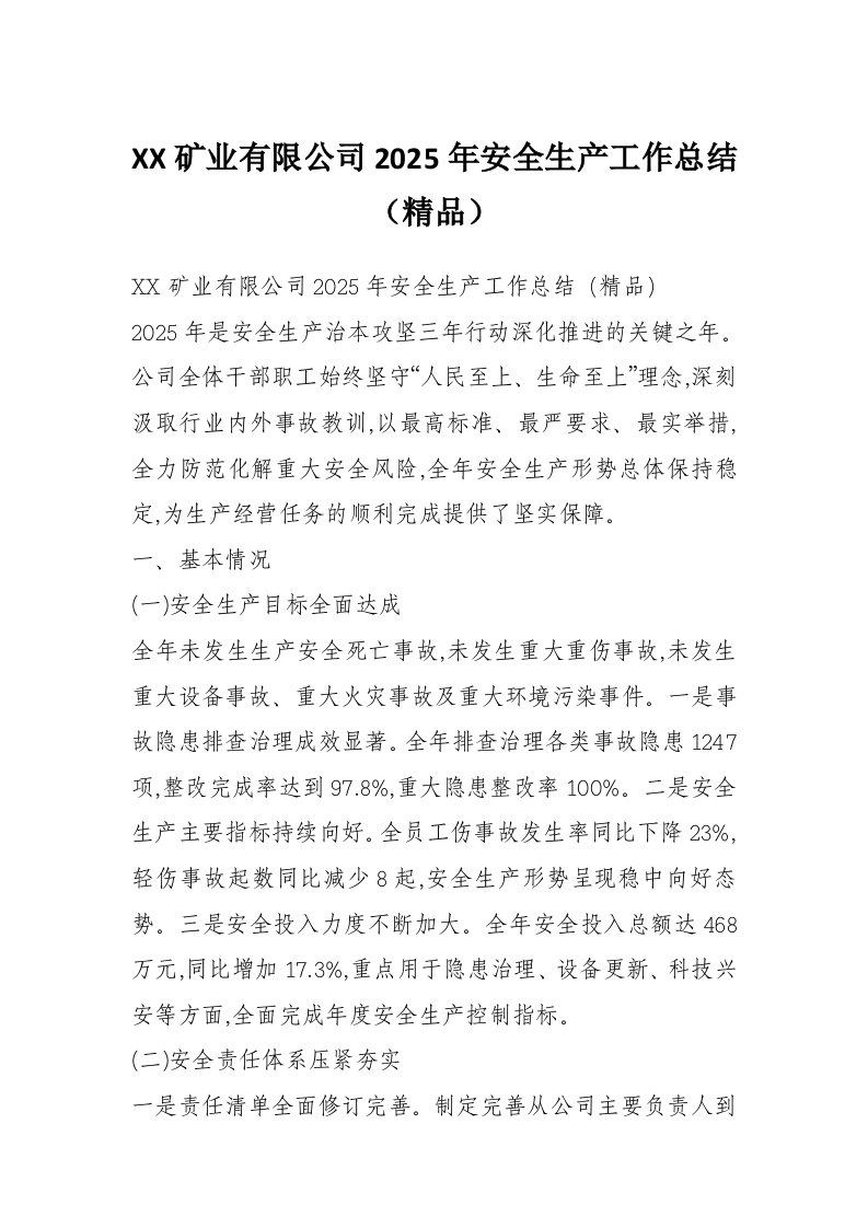 XX矿业有限公司2025年安全生产工作总结(精品)