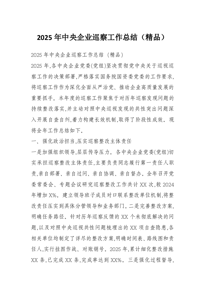 首页写作素材2025年中央企业巡察工作总结(精品)