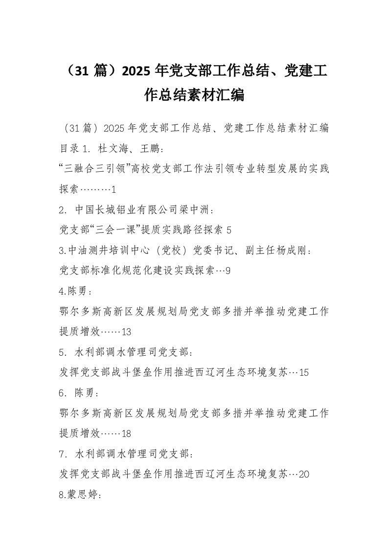 首页学习提升(31篇)2025年党支部工作总结、党建工作总结素材汇编