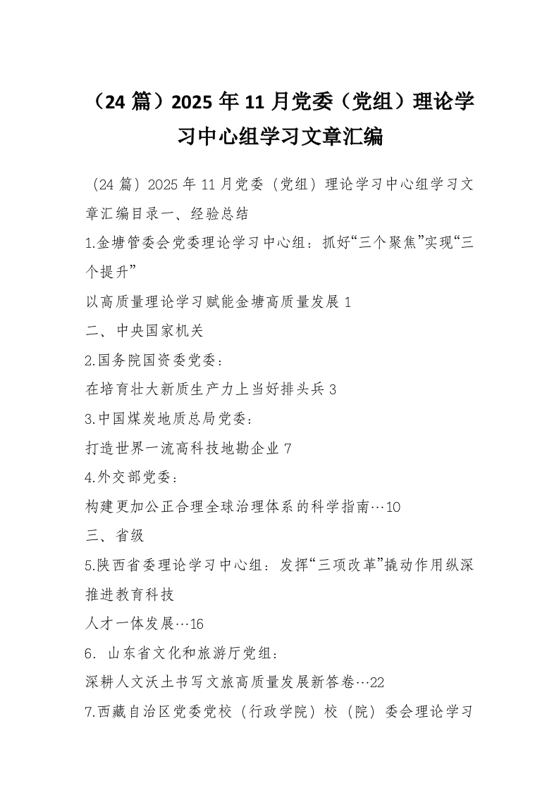 (24篇)2025年11月党委(党组)理论学习中心组学习文章汇编