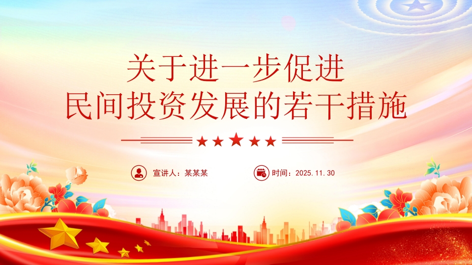 首页PPT模板精美大气《关于进一步促进民间投资发展的若干措施》PPT课件