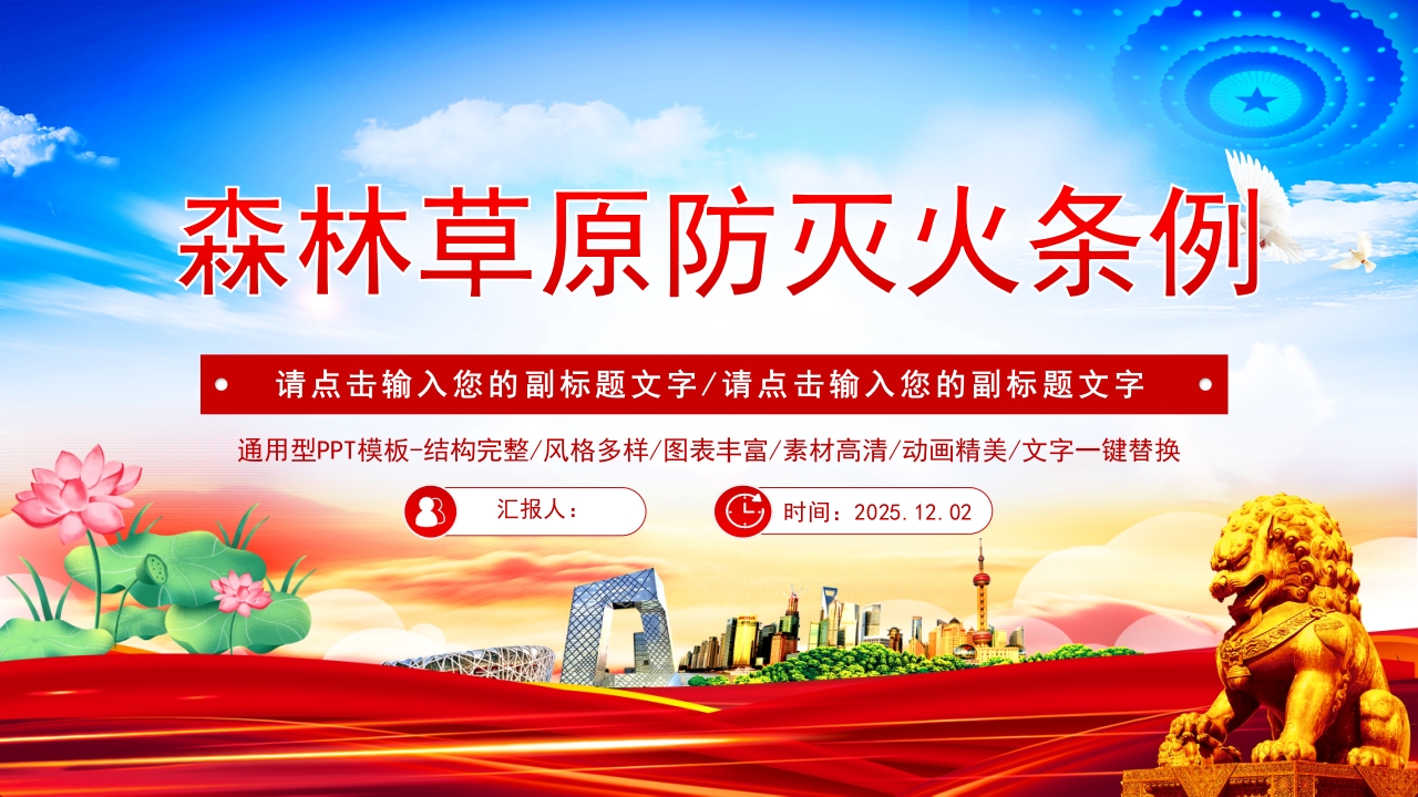 首页PPT模板《森林草原防灭火条例》PPT法律法规课件