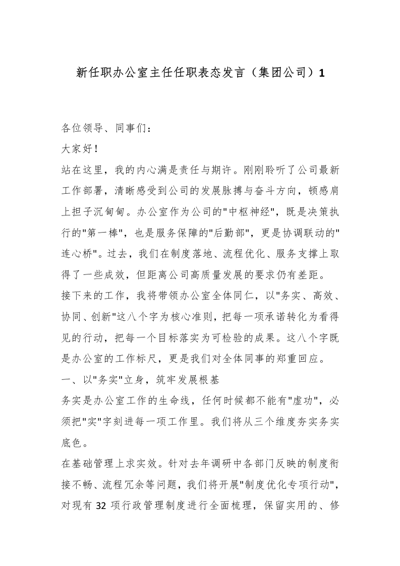 新任职办公室主任任职表态发言(集团公司)1_副本