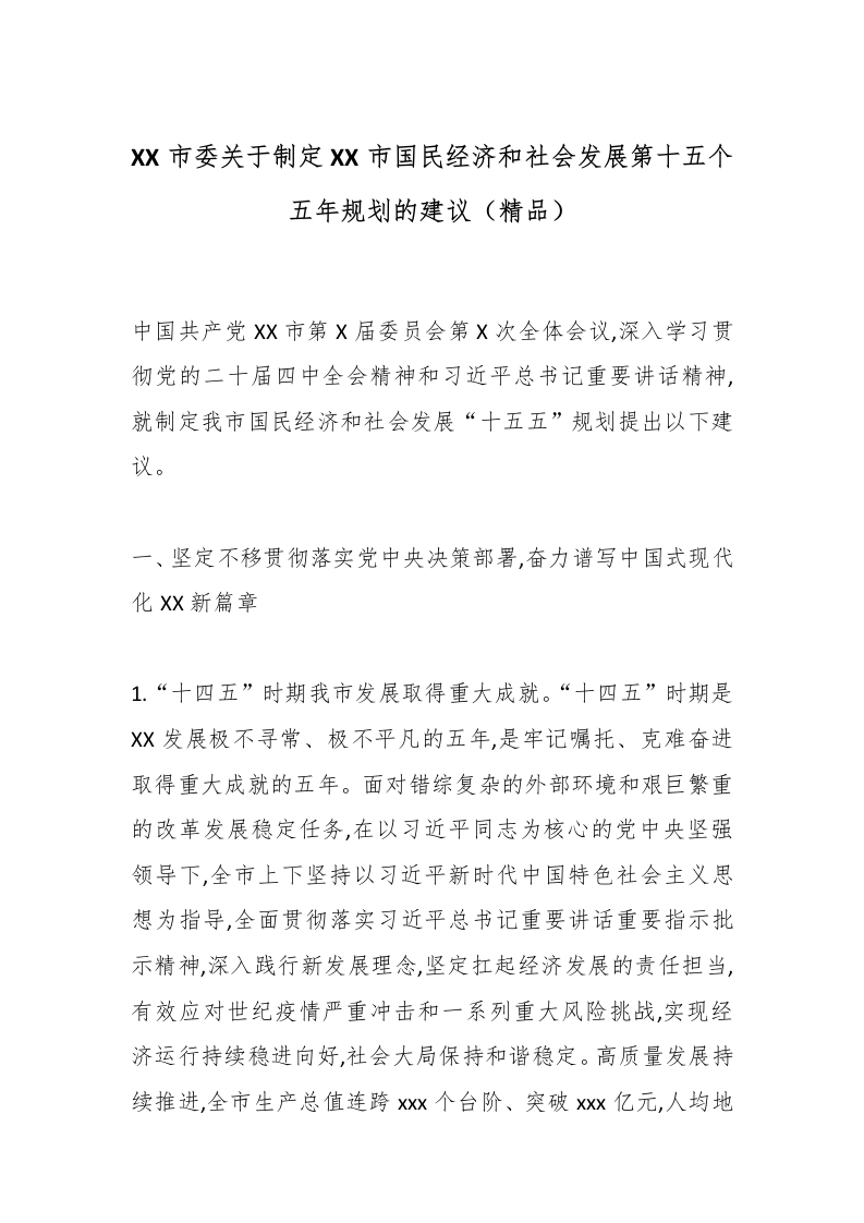 XX市委关于制定XX市国民经济和社会发展第十五个五年规划的建议(精品)_副本