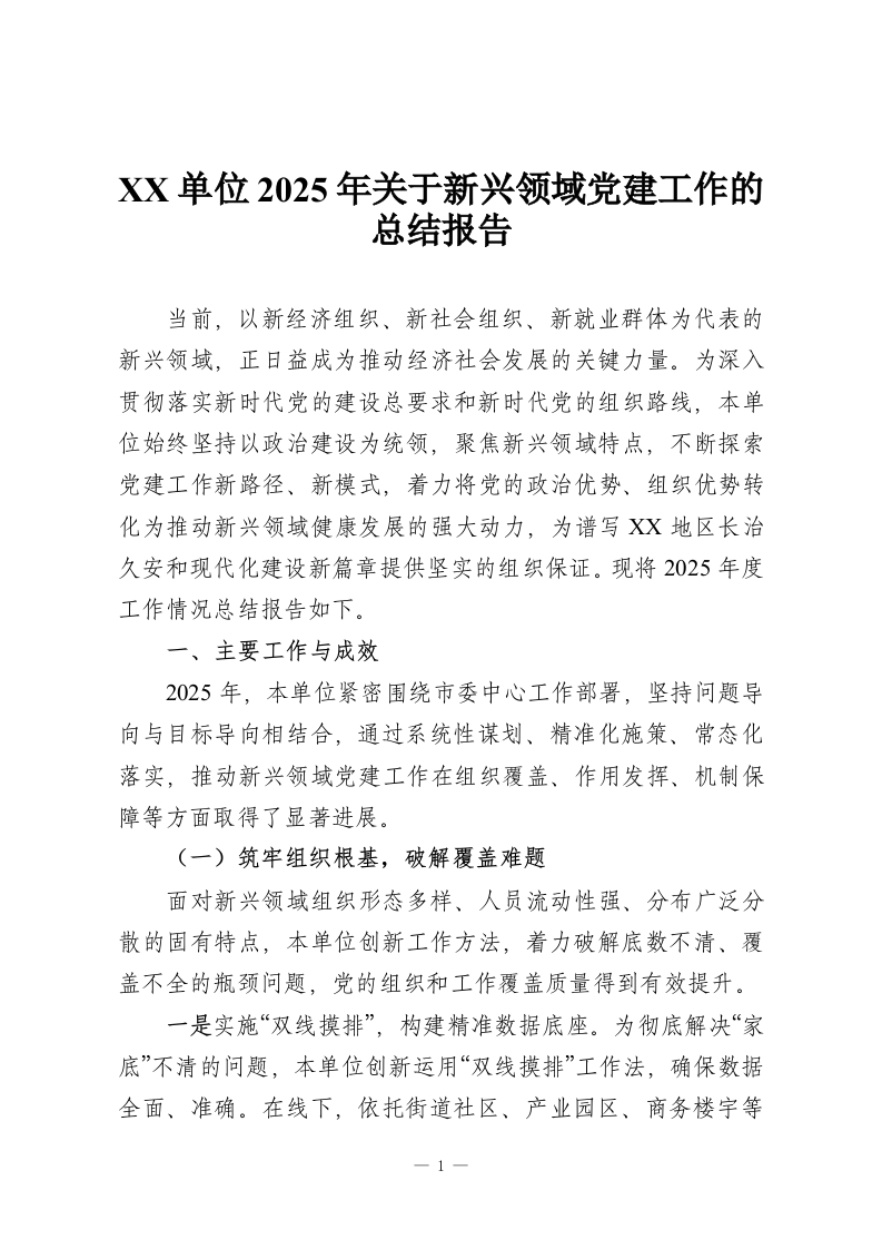 首页工作文档XX单位2025年关于新兴领域党建工作的总结报告